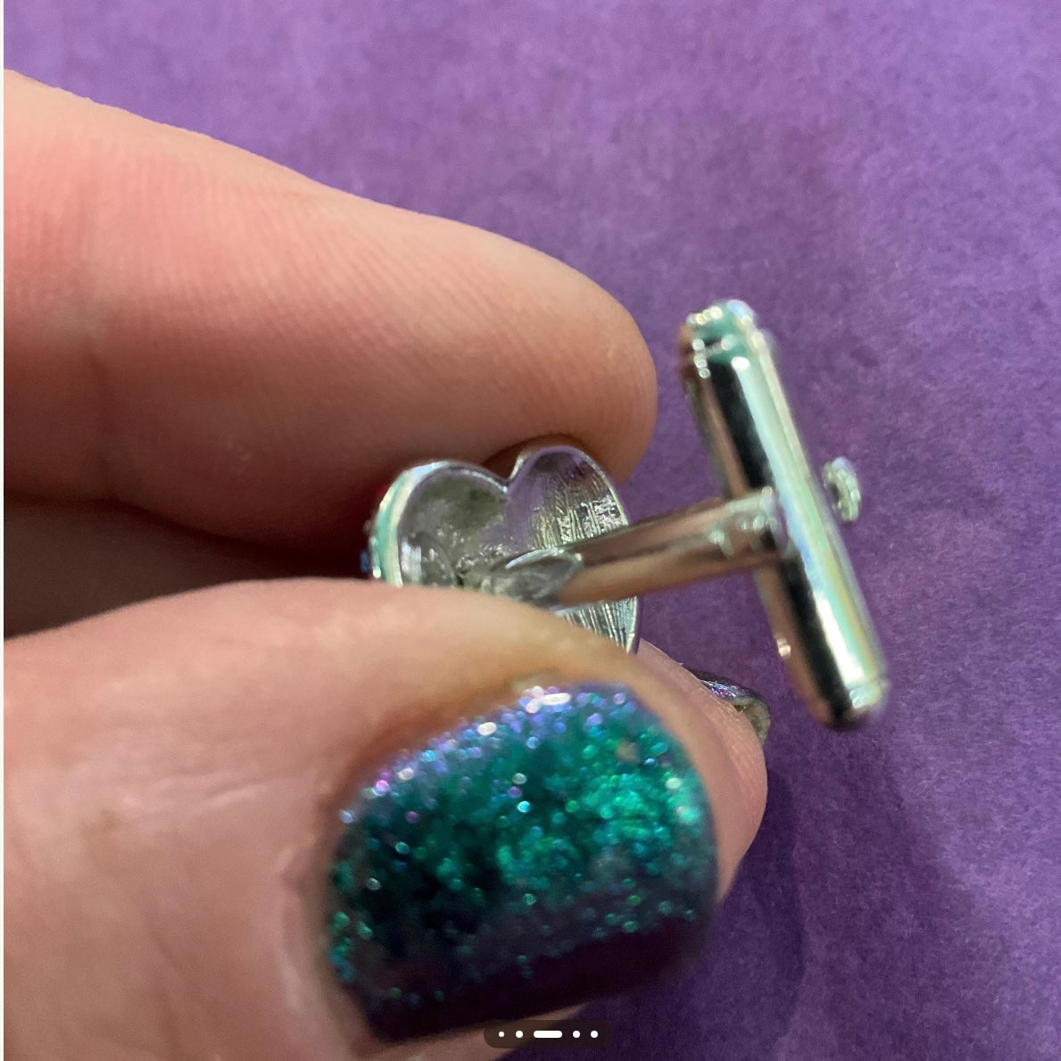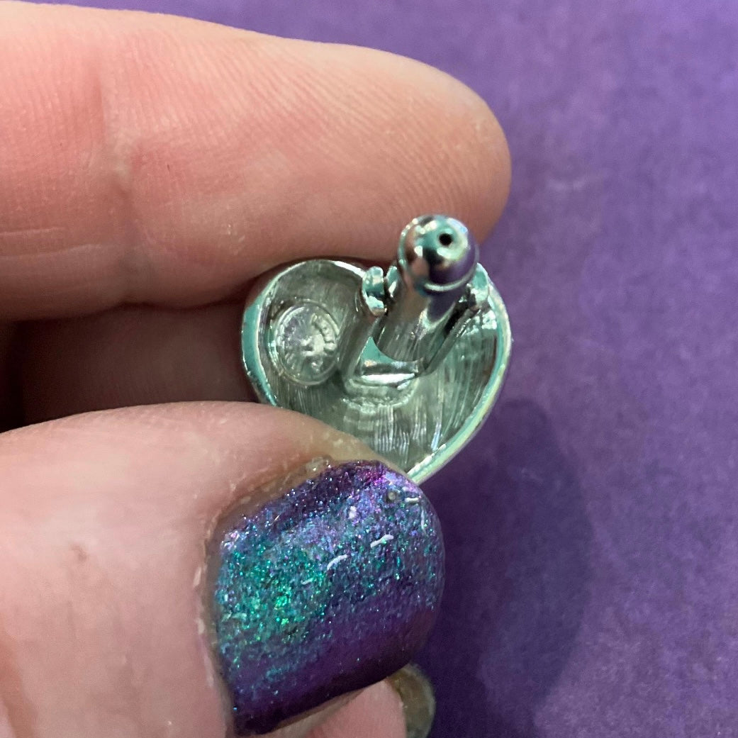stand out from the crowd wearing these fabulous Union Jack cufflinks by iconic designers Butler and Wilson. Made from silver tone metal, the heart shaped cufflinks are beautifully decorated in the pattern of the British Union Jack Flag in tiny red, silver and blue rhinestone crystals. They have secure posts and are stamped with the Butler and Wilson logo on the back. Measure 1.5cm x 1.5cm approx. Excellent vintage condition. original box. Similar Butler and Wilson Union Jack jewellery is available in separate listings.